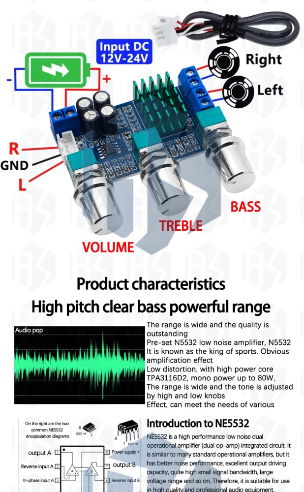 Modul amplificare clasa 2x80W TPA3116D2 DC12-24V