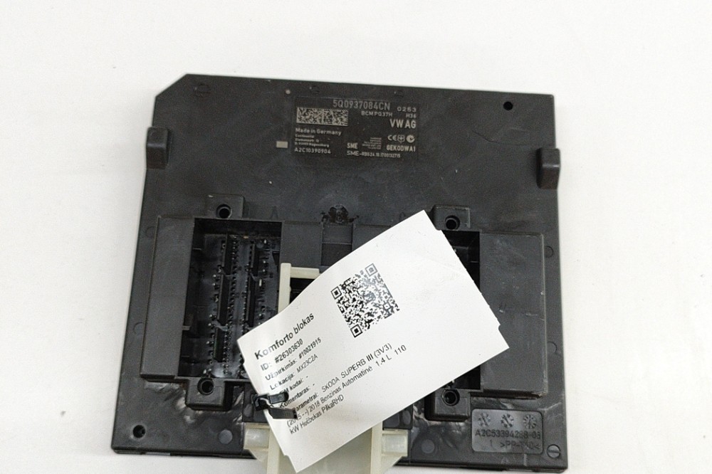 Modul de confort SKODA SUPERB III 3V3 . OEM: 5Q0937084CN,A2C10390904,5WK50254 . Expediem în siguranță din depozitele noastre din Europa Centrală și de Nord, folosind soluții logistice de încredere. Suntem cel mai mare depozit de piese auto din dezmembrări din Europa de Nord, oferind o gamă largă de piese second-hand precum motoare, baterii pentru vehicule electrice, cutii de viteze etc. Gama noastră include piese pentru BMW, Mercedes-Benz, Audi, VW, Seat, Toyota, Lexus, Tesla, Nissan, Peugeot, Citroen, Renault, Land Rover, Jaguar și alte mărci auto. Oferim garanție pentru piese originale și politică de retur. Când ne sunați, vă explicăm condițiile de garanție pentru fiecare caz în parte și organizăm livrarea folosind logistică modernă. Piesele uzate sunt acoperite de garanție.