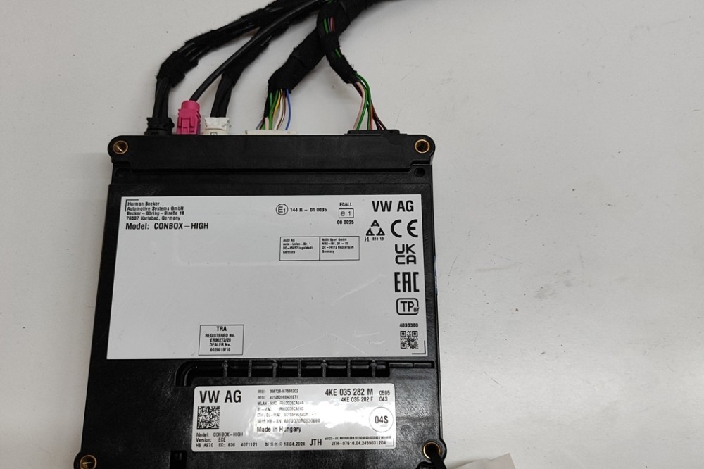 Modul de control Bluetooth AUDI Q8 E-TRON Sportback . OEM: 4KE035282M,4KE035282F . Aceasta este o piesă originală de la producător, asigurând calitatea și compatibilitatea cu vehiculul dumneavoastră. . Expediem în siguranță din depozitele noastre din Europa Centrală și de Nord, folosind soluții logistice de încredere. Suntem cel mai mare depozit de piese auto din dezmembrări din Europa de Nord, oferind o gamă largă de piese second-hand precum motoare, baterii pentru vehicule electrice, cutii de viteze etc. Gama noastră include piese pentru BMW, Mercedes-Benz, Audi, VW, Seat, Toyota, Lexus, Tesla, Nissan, Peugeot, Citroen, Renault, Land Rover, Jaguar și alte mărci auto. Oferim garanție pentru piese originale și politică de retur. Când ne sunați, vă explicăm condițiile de garanție pentru fiecare caz în parte și organizăm livrarea folosind logistică modernă. Piesele uzate sunt acoperite de garanție.