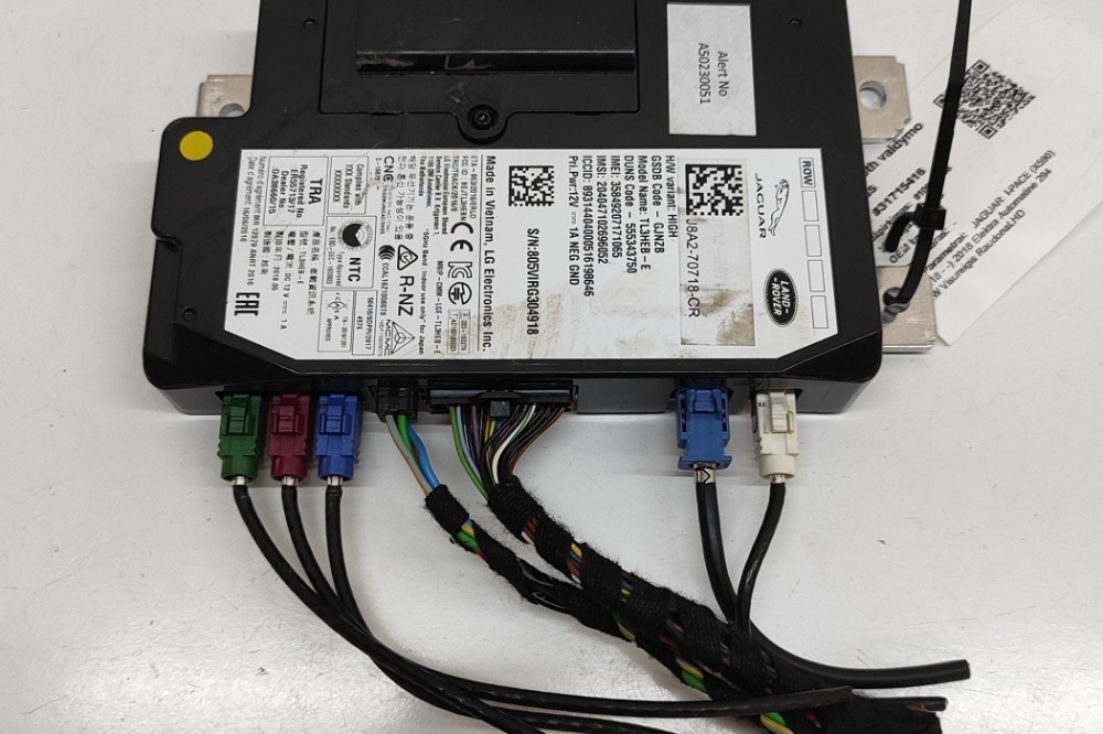 Modul de control Bluetooth JAGUAR I-PACE X590 . OEM: J8A2-70718-CR . Aceasta este o piesă originală de la producător, asigurând calitatea și compatibilitatea cu vehiculul dumneavoastră. . Expediem în siguranță din depozitele noastre din Europa Centrală și de Nord, folosind soluții logistice de încredere. Suntem cel mai mare depozit de piese auto din dezmembrări din Europa de Nord, oferind o gamă largă de piese second-hand precum motoare, baterii pentru vehicule electrice, cutii de viteze etc. Gama noastră include piese pentru BMW, Mercedes-Benz, Audi, VW, Seat, Toyota, Lexus, Tesla, Nissan, Peugeot, Citroen, Renault, Land Rover, Jaguar și alte mărci auto. Oferim garanție pentru piese originale și politică de retur. Când ne sunați, vă explicăm condițiile de garanție pentru fiecare caz în parte și organizăm livrarea folosind logistică modernă. Piesele uzate sunt acoperite de garanție.