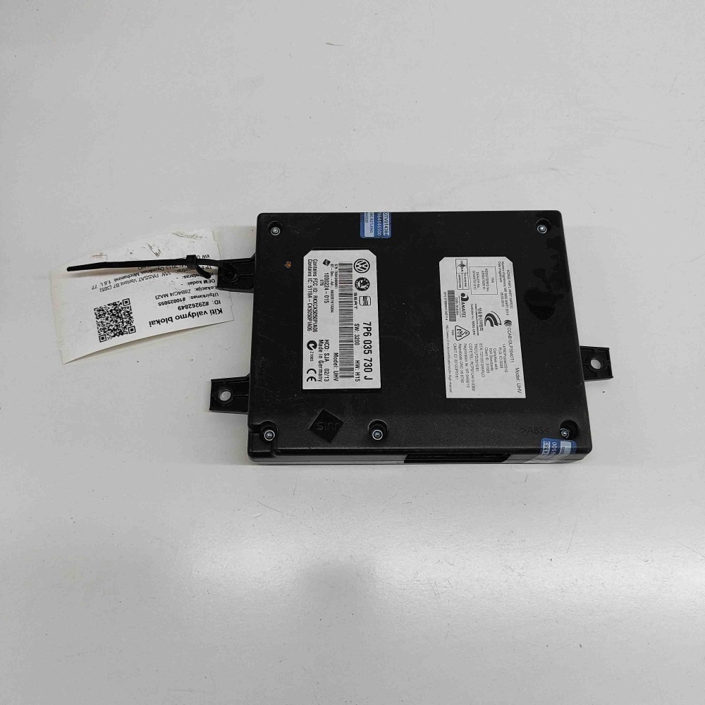 Modul de control Bluetooth VW PASSAT Variant B7 365 . OEM: 7P6035730J . Aceasta este o piesă originală de la producător, asigurând calitatea și compatibilitatea cu vehiculul dumneavoastră. . Expediem în siguranță din depozitele noastre din Europa Centrală și de Nord, folosind soluții logistice de încredere. Suntem cel mai mare depozit de piese auto din dezmembrări din Europa de Nord, oferind o gamă largă de piese second-hand precum motoare, baterii pentru vehicule electrice, cutii de viteze etc. Gama noastră include piese pentru BMW, Mercedes-Benz, Audi, VW, Seat, Toyota, Lexus, Tesla, Nissan, Peugeot, Citroen, Renault, Land Rover, Jaguar și alte mărci auto. Oferim garanție pentru piese originale și politică de retur. Când ne sunați, vă explicăm condițiile de garanție pentru fiecare caz în parte și organizăm livrarea folosind logistică modernă. Piesele uzate sunt acoperite de garanție.