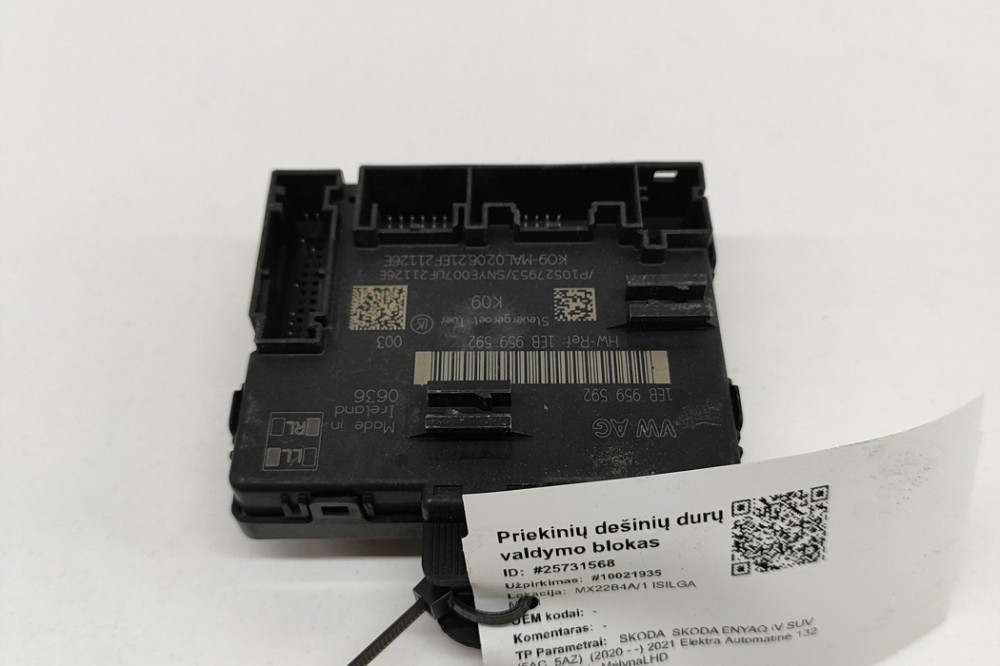 Modul de control ușă dreapta față SKODA SKODA ENYAQ iV SUV 5AC, 5AZ 2021 OEM: 1EB959592,P10527953 | 25731568