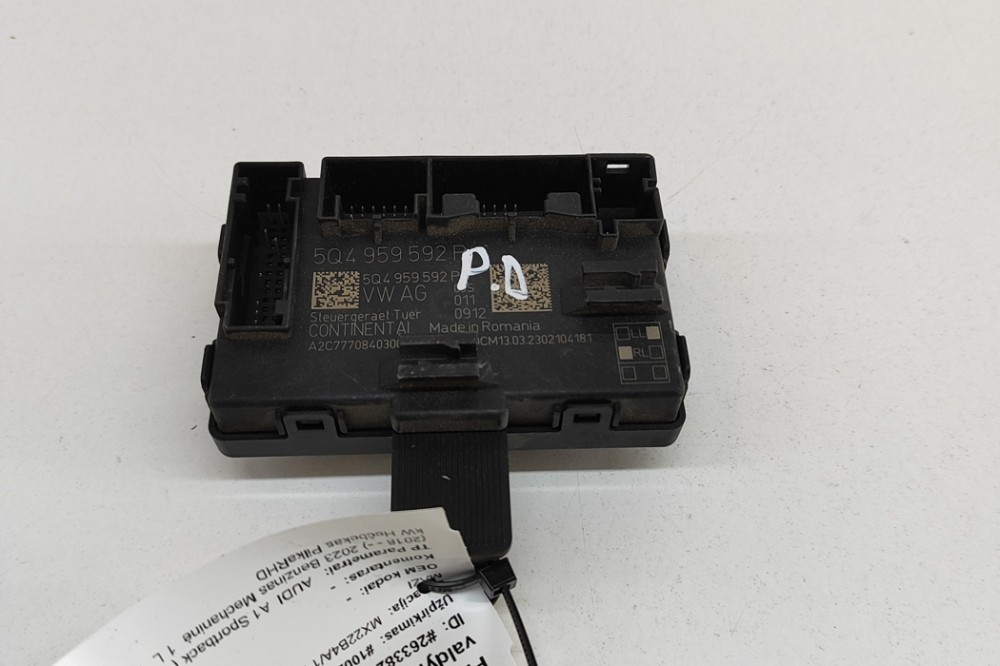 Modul de control ușă stânga față AUDI A1 Sportback GBA . OEM: 5Q4959592P,A2C7770840300 . Aceasta este o piesă originală de la producător, asigurând calitatea și compatibilitatea cu vehiculul dumneavoastră. . Expediem în siguranță din depozitele noastre din Europa Centrală și de Nord, folosind soluții logistice de încredere. Suntem cel mai mare depozit de piese auto din dezmembrări din Europa de Nord, oferind o gamă largă de piese second-hand precum motoare, baterii pentru vehicule electrice, cutii de viteze etc. Gama noastră include piese pentru BMW, Mercedes-Benz, Audi, VW, Seat, Toyota, Lexus, Tesla, Nissan, Peugeot, Citroen, Renault, Land Rover, Jaguar și alte mărci auto. Oferim garanție pentru piese originale și politică de retur. Când ne sunați, vă explicăm condițiile de garanție pentru fiecare caz în parte și organizăm livrarea folosind logistică modernă. Piesele uzate sunt acoperite de garanție.