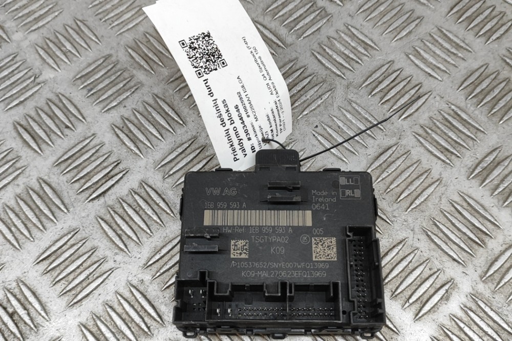 Modul de control ușă stânga față AUDI Q4 Sportback F4N . OEM: 1EB959593A . Aceasta este o piesă originală de la producător, asigurând calitatea și compatibilitatea cu vehiculul dumneavoastră. . Expediem în siguranță din depozitele noastre din Europa Centrală și de Nord, folosind soluții logistice de încredere. Suntem cel mai mare depozit de piese auto din dezmembrări din Europa de Nord, oferind o gamă largă de piese second-hand precum motoare, baterii pentru vehicule electrice, cutii de viteze etc. Gama noastră include piese pentru BMW, Mercedes-Benz, Audi, VW, Seat, Toyota, Lexus, Tesla, Nissan, Peugeot, Citroen, Renault, Land Rover, Jaguar și alte mărci auto. Oferim garanție pentru piese originale și politică de retur. Când ne sunați, vă explicăm condițiile de garanție pentru fiecare caz în parte și organizăm livrarea folosind logistică modernă. Piesele uzate sunt acoperite de garanție.