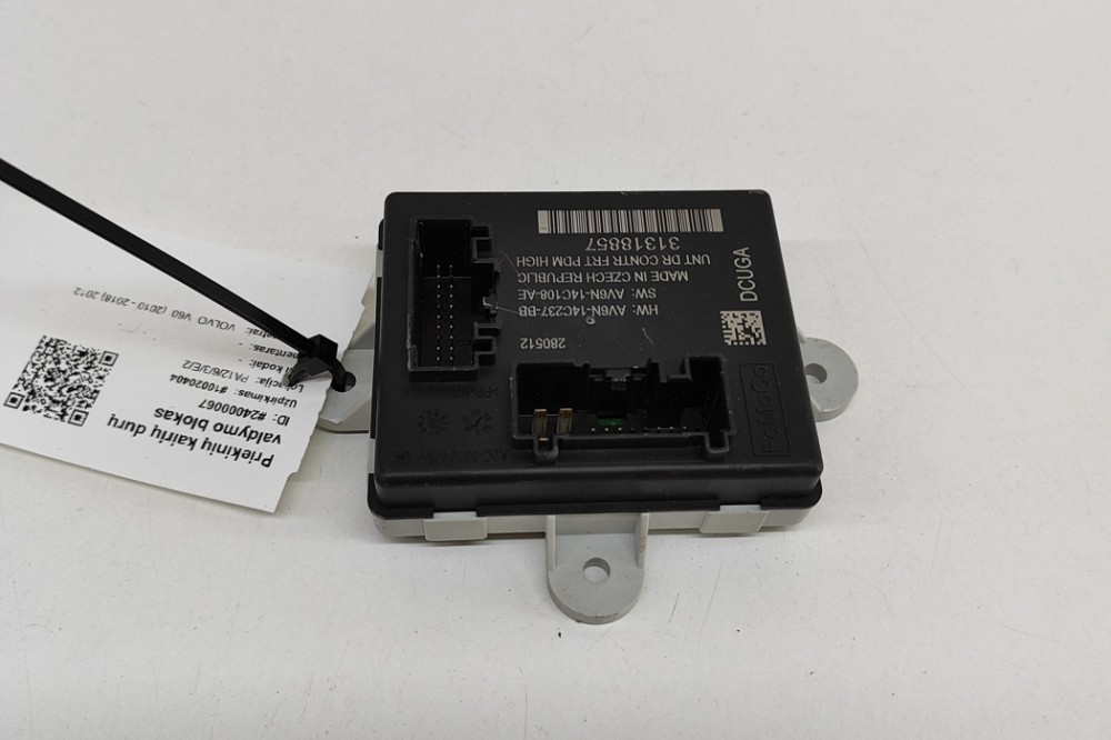 Modul de control ușă stânga față VOLVO V60 . OEM: AV6N-14C237-BB,AV6N-14C108-AE,31318857 . Aceasta este o piesă originală de la producător, asigurând calitatea și compatibilitatea cu vehiculul dumneavoastră. . Expediem în siguranță din depozitele noastre din Europa Centrală și de Nord, folosind soluții logistice de încredere. Suntem cel mai mare depozit de piese auto din dezmembrări din Europa de Nord, oferind o gamă largă de piese second-hand precum motoare, baterii pentru vehicule electrice, cutii de viteze etc. Gama noastră include piese pentru BMW, Mercedes-Benz, Audi, VW, Seat, Toyota, Lexus, Tesla, Nissan, Peugeot, Citroen, Renault, Land Rover, Jaguar și alte mărci auto. Oferim garanție pentru piese originale și politică de retur. Când ne sunați, vă explicăm condițiile de garanție pentru fiecare caz în parte și organizăm livrarea folosind logistică modernă. Piesele uzate sunt acoperite de garanție.