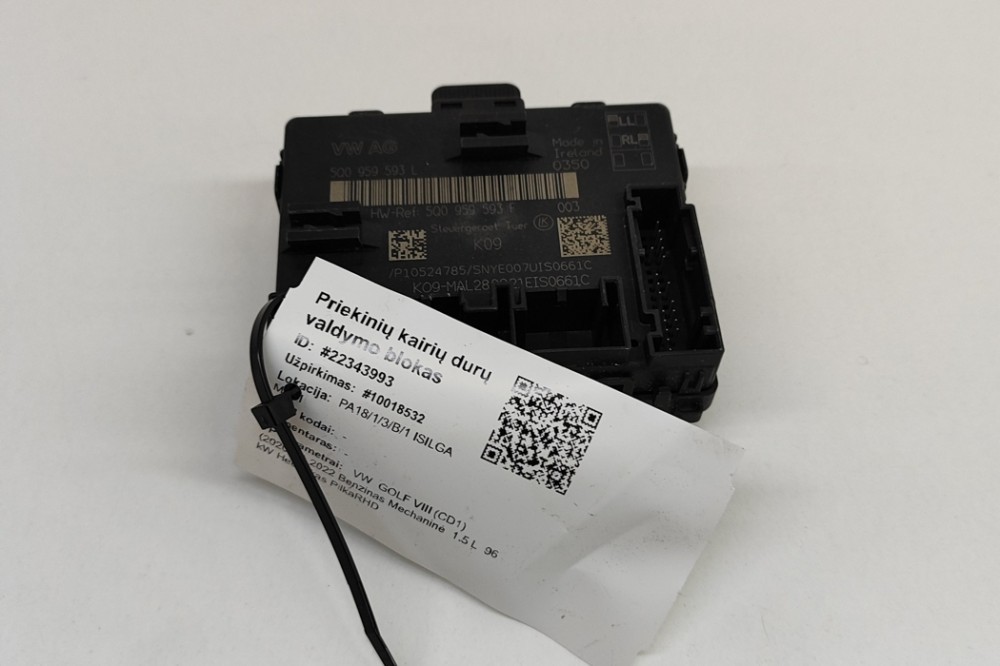 Modul de control ușă stânga față VW GOLF VIII CD1 . OEM: 5Q0959593L,5Q0959593F,P10524785 . Aceasta este o piesă originală de la producător, asigurând calitatea și compatibilitatea cu vehiculul dumneavoastră. . Expediem în siguranță din depozitele noastre din Europa Centrală și de Nord, folosind soluții logistice de încredere. Suntem cel mai mare depozit de piese auto din dezmembrări din Europa de Nord, oferind o gamă largă de piese second-hand precum motoare, baterii pentru vehicule electrice, cutii de viteze etc. Gama noastră include piese pentru BMW, Mercedes-Benz, Audi, VW, Seat, Toyota, Lexus, Tesla, Nissan, Peugeot, Citroen, Renault, Land Rover, Jaguar și alte mărci auto. Oferim garanție pentru piese originale și politică de retur. Când ne sunați, vă explicăm condițiile de garanție pentru fiecare caz în parte și organizăm livrarea folosind logistică modernă. Piesele uzate sunt acoperite de garanție.