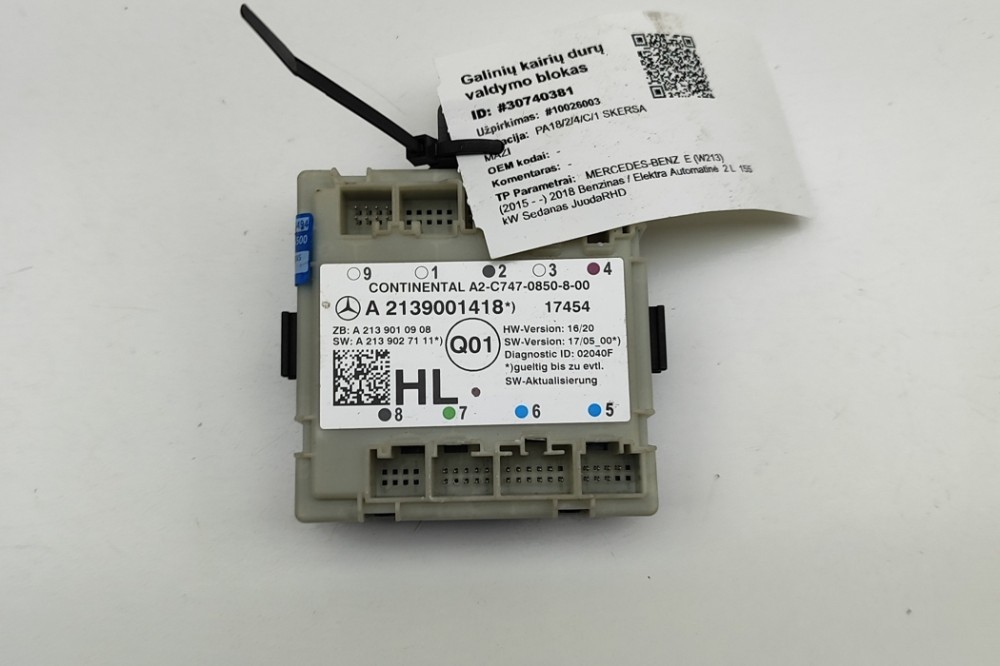Modul de control ușă stânga spate MERCEDES-BENZ E W213 . OEM: A2139001418,A2139010908,A2139027111,A2C7470850800 . Aceasta este o piesă originală de la producător, asigurând calitatea și compatibilitatea cu vehiculul dumneavoastră. . Expediem în siguranță din depozitele noastre din Europa Centrală și de Nord, folosind soluții logistice de încredere. Suntem cel mai mare depozit de piese auto din dezmembrări din Europa de Nord, oferind o gamă largă de piese second-hand precum motoare, baterii pentru vehicule electrice, cutii de viteze etc. Gama noastră include piese pentru BMW, Mercedes-Benz, Audi, VW, Seat, Toyota, Lexus, Tesla, Nissan, Peugeot, Citroen, Renault, Land Rover, Jaguar și alte mărci auto. Oferim garanție pentru piese originale și politică de retur. Când ne sunați, vă explicăm condițiile de garanție pentru fiecare caz în parte și organizăm livrarea folosind logistică modernă. Piesele uzate sunt acoperite de garanție.