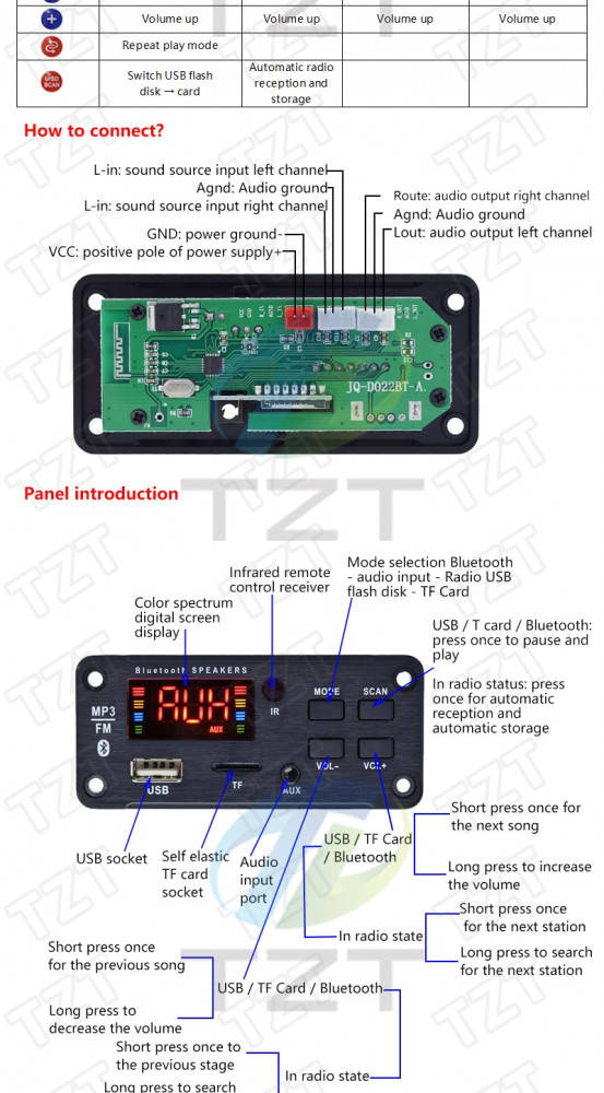 function (Bluetooth version 5.0) / dual decoding MP3, wma, WAV,