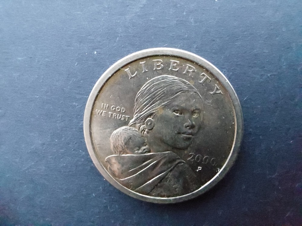 Moneda one dollar Sacagawea an2000 S.U.A. Poze reale.