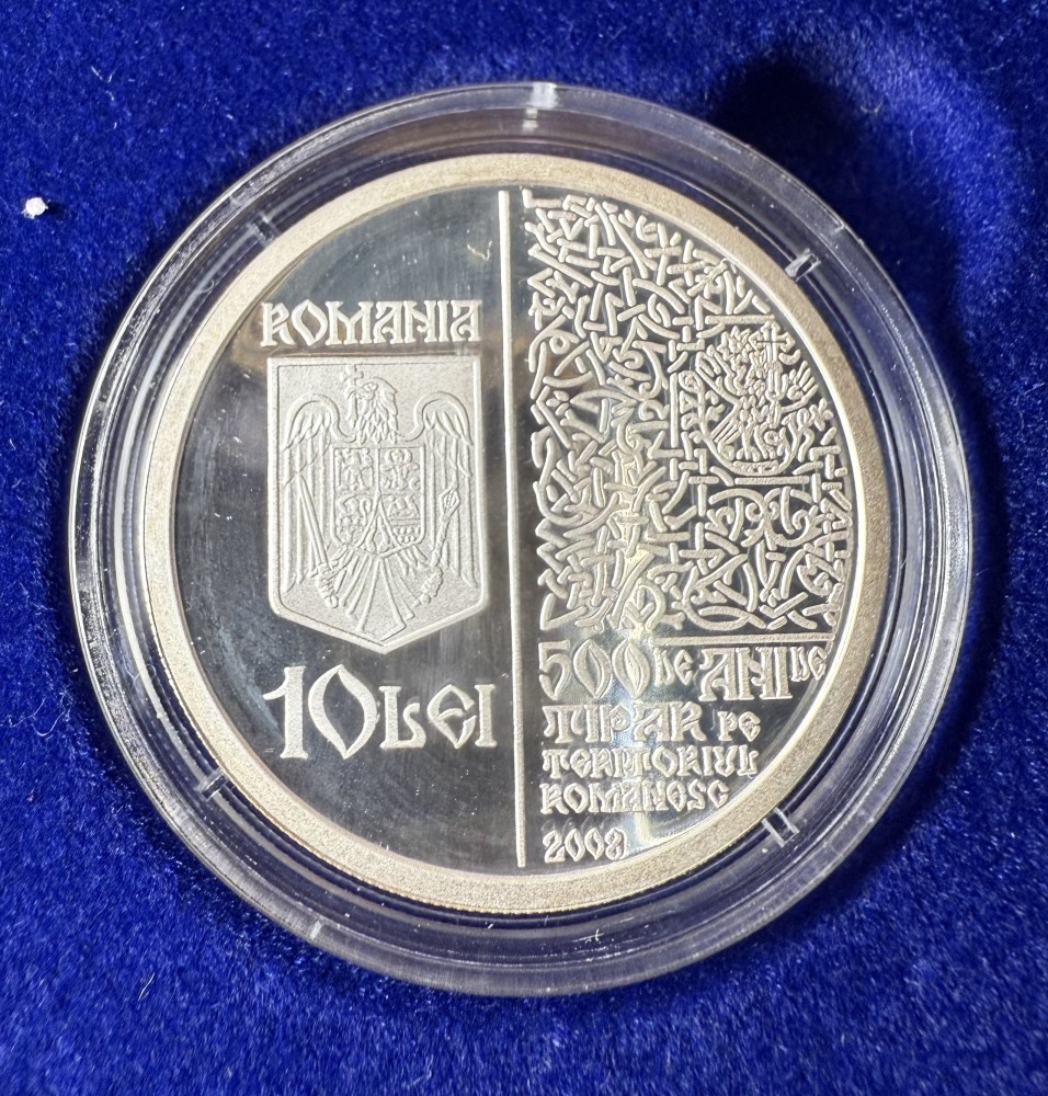 Moneda 10 Lei 2008 Proof Argint 500 lei de tipar Manastirea Dealu