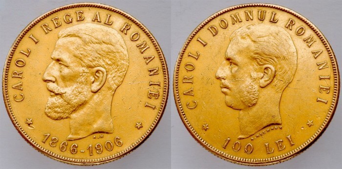 100 lei 1906 (31 gr. aur), gradat NGC AU 50