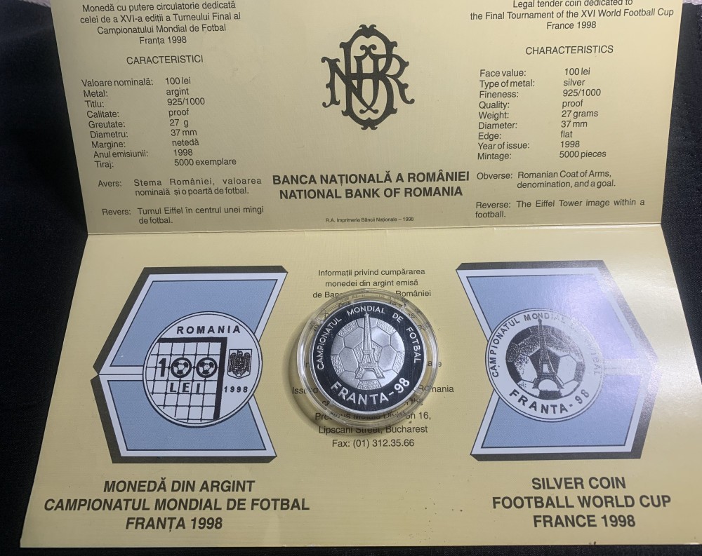 Moneda 100 lei 1998 Campiontul mondial de fotbal Franța BNR