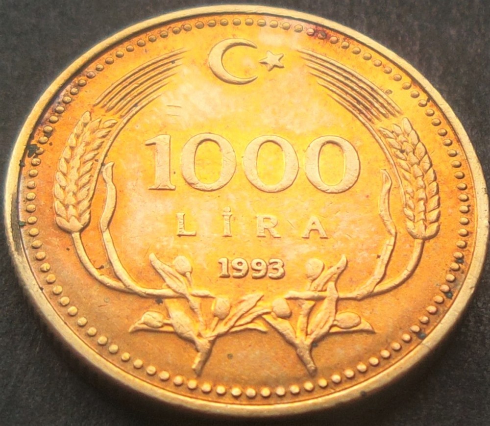 Moneda 1000 LIRE - TURCIA, anul 1993 * cod 1430 = luciu batere