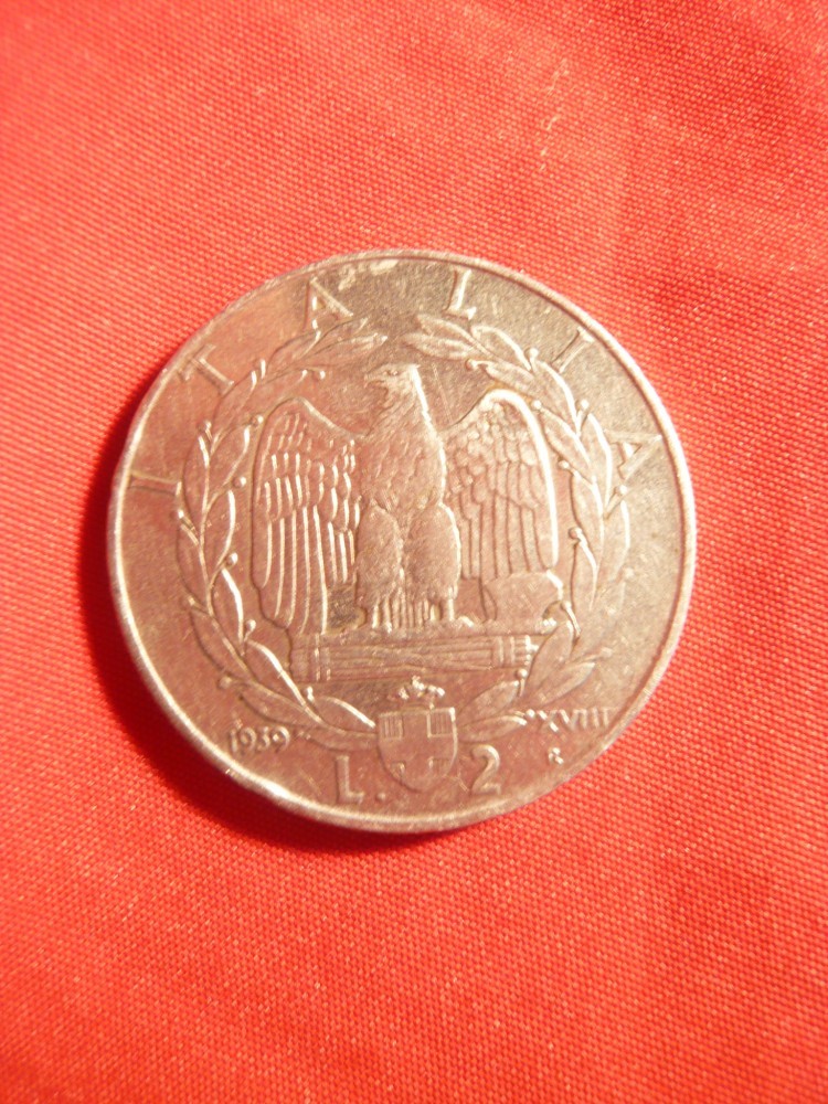Moneda 2 Lire 1939 Victor Emanuel, Italia , otel ,cal.apr.NC, muchie dintata,cal.F.Buna
