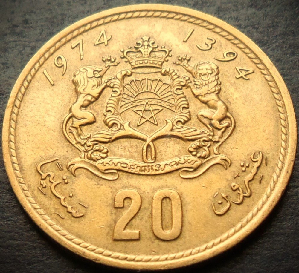 Moneda 20 SANTIMAT - MAROC, anul 1974 * cod 3084 A