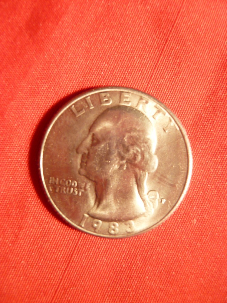 Moneda 25 Cent 1983 litera P , SUA ,metal alb ,cal.aproape NC