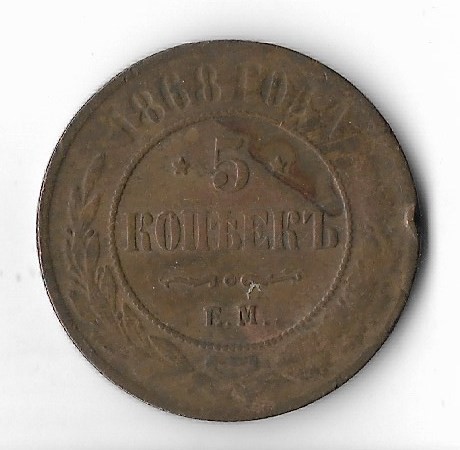 Moneda 5 kopeks 1868 - Rusia