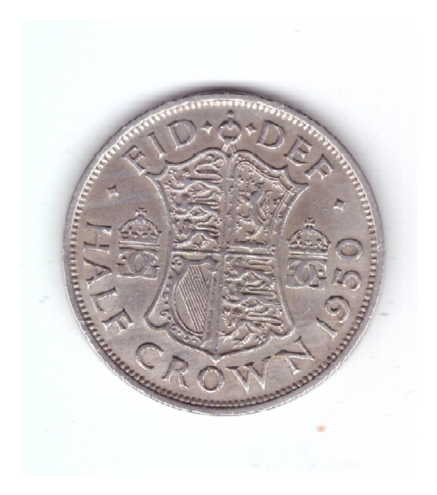Moneda Anglia 1/2 / half crown 1950, stare buna, mic defect pe revers la barbia lui George VI, curata.