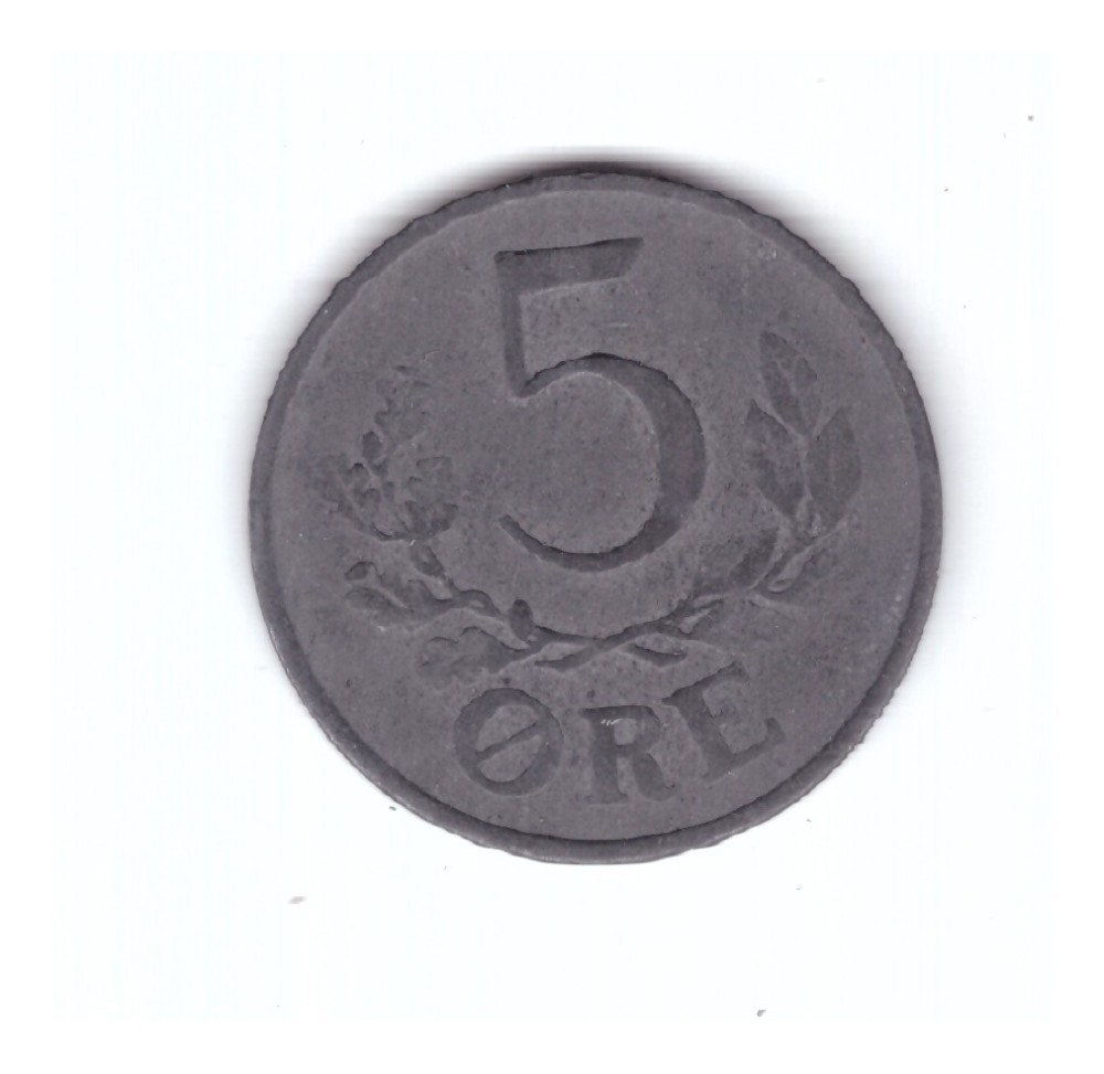 Moneda Danemarca 5 ore 194-, ocupatia germana, stare buna, curata. Nu se vede ultima cifra, poate fi intre 42-45.