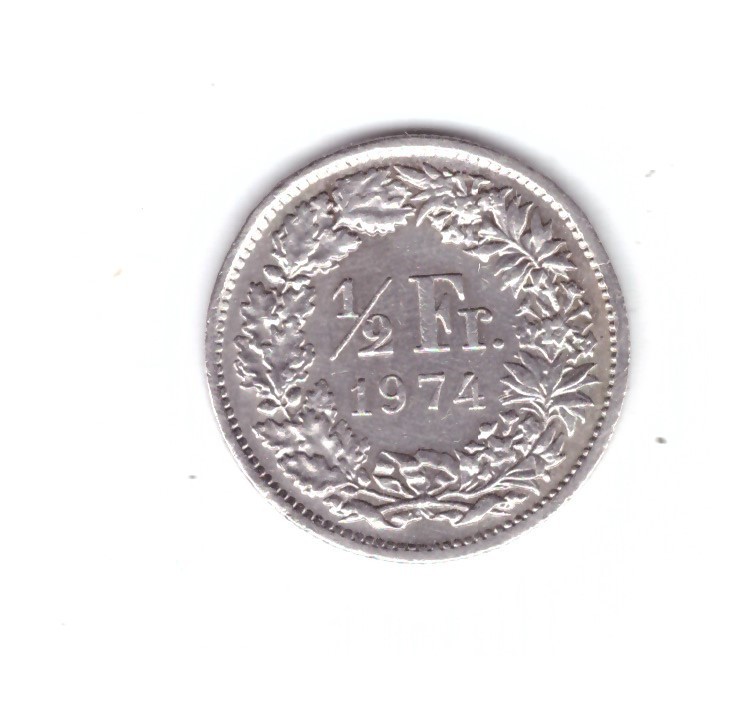 Moneda Elvetia 1/2 franc 1974, stare foarte buna, curata