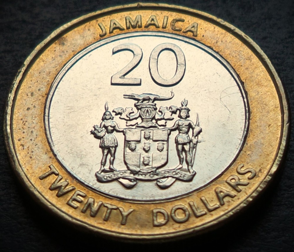 Moneda exotica - bimetal 20 DOLARI - JAMAICA, anul 2008 * cod 4701 = excelenta