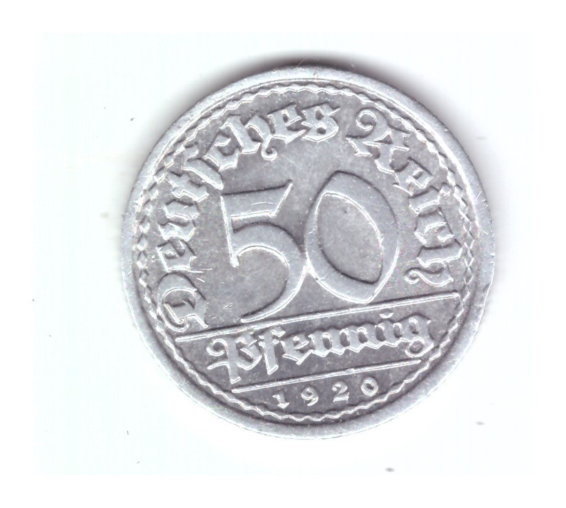 Moneda Germania 50 pfennig 1920 J, stare buna, curata.