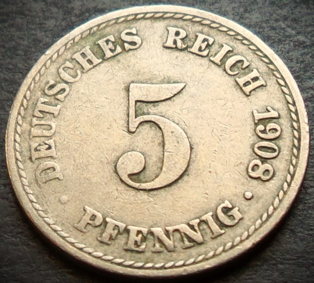 Moneda istorica 5 PFENNIG - GERMANIA, anul 1908 *cod 3235 B - litera A
