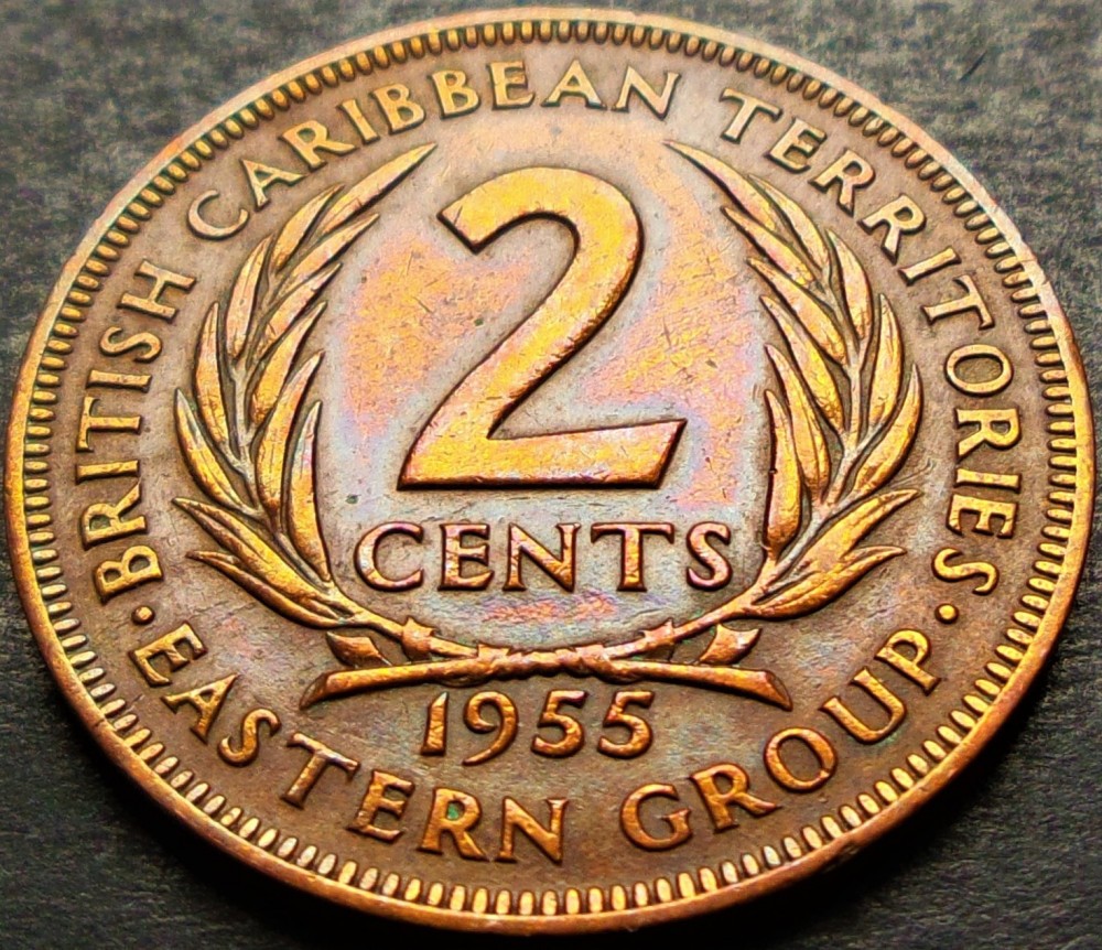 Moneda istorica & exotica 2 CENTI - CARAIBE de EST, anul 1955 *cod 245 A