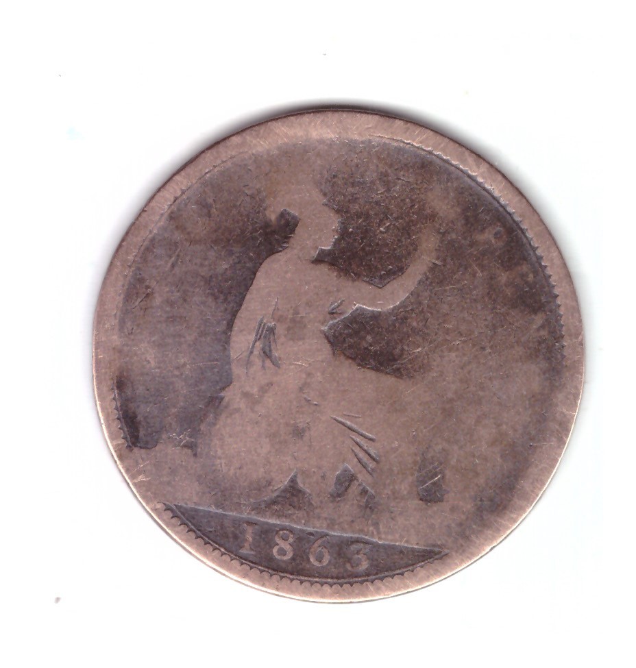 Moneda Marea Britanie 1 penny 1863, uzata, curata.