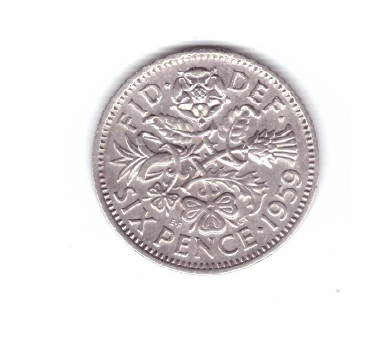 Moneda Marea Britanie 6 pence 1959, stare foarte buna, curata.