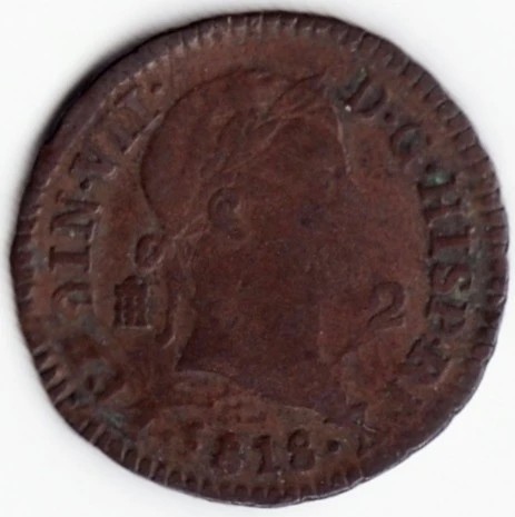 Regatul Spaniei - 2 Maravedis 1818 - Ferdinand al VII-lea