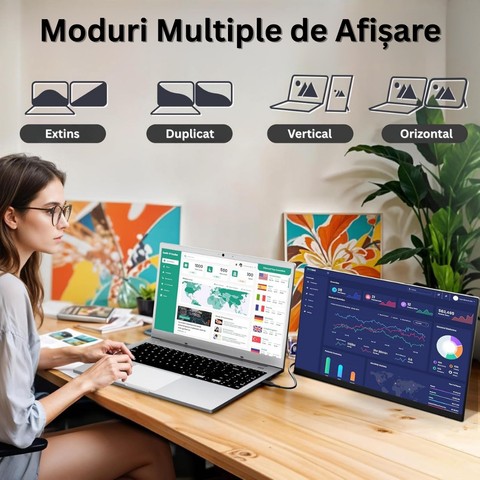 Transformă-ți laptopul într-o stație de lucru ultra-productivă cu acest monitor extensibil de 15,6 inch, ideal pentru profesioniști, creatori de conținut, gameri și utilizatori de birou. Bucură-te de multitasking eficient, imagini clare și culori vii – oriunde te-ai afla!