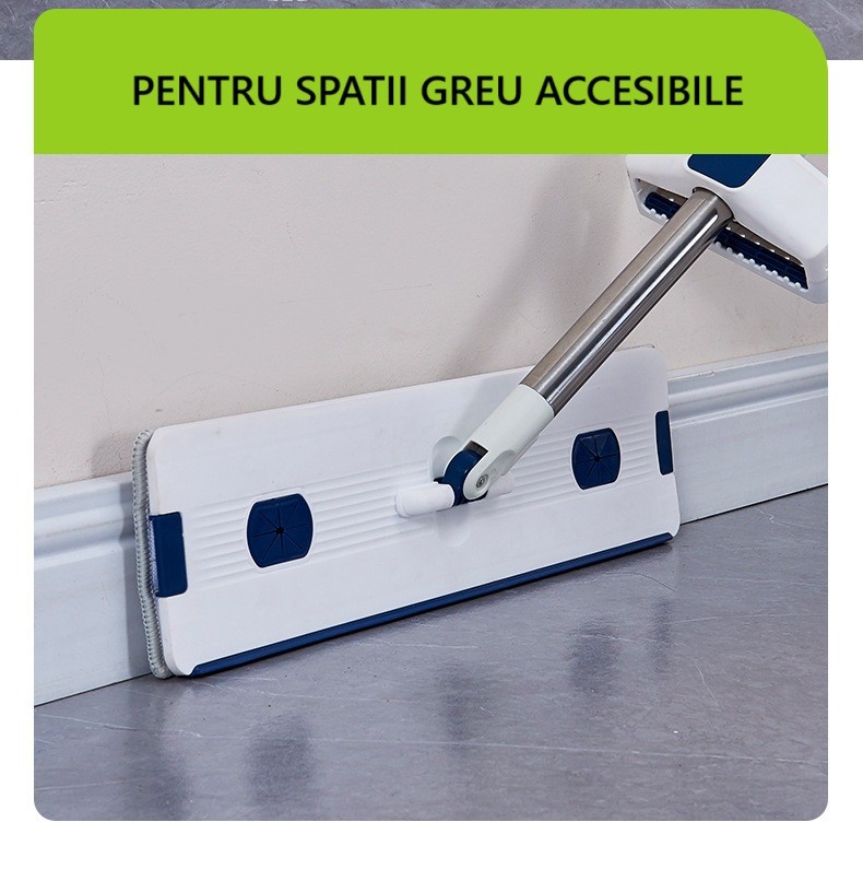 Utilizare versatilă: Mop ideal pentru curățenie umedă sau uscată, inclusiv pe plinte, colțuri sau geamuri.