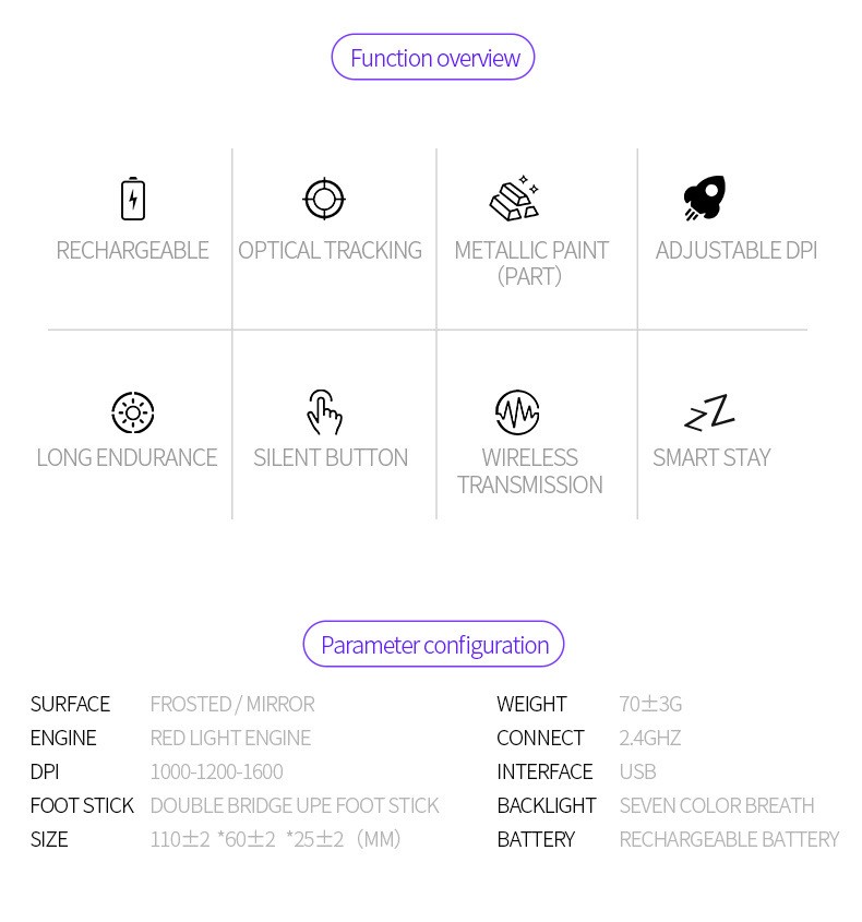| Model | 1.Mouse wireless USB 2.cu lumina RGB3.cu functie 4.cu lumina RGB |