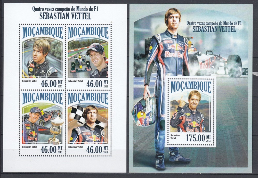 Mozambic 2013 - MASINI RALIURI F1 - SEBASTIAN VETTEL - BL+KB - MNH
