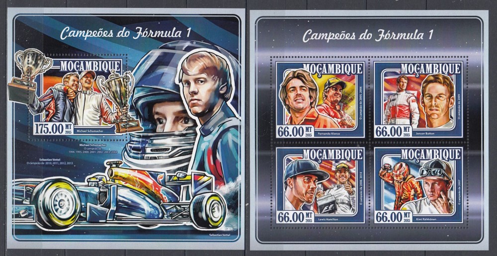Mozambic 2015- MASINI de CURSE - FORMULA 1- HAMILTON, etc - BL+ KB - MNH
