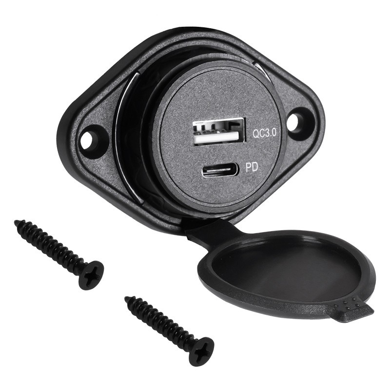 Mufa alimentare auto panou USB QC3.0 18W/ TYPE C QC /PD 18W Peiying PY-CHR0009. Tip: montaj Conector: USB (QC 3.0) 18 W, PD 18 W Intrare: DC 12 - 24 V Ieșire: • USB-A: 5 V / 3 A, 9 V / 2 A, 12 V / 1,5 A ( max. 18 W) • USB-C: 5 V / 3 A, 9 V / 2 A, 12 V / 1,5 A (max. 18 W) Lungime cablu: 12 cm Protecții: Împotriva supraîncărcării și supratensiunii.