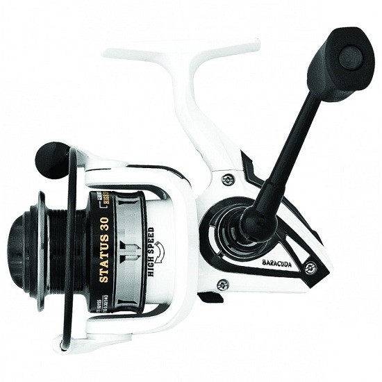 Mulineta Baracuda Status 3000 7R<br><br>Mulineta spinning/bolognesa Baracuda Status 30, frana fata, 7R este o mulineta recomandată spinning-ului sau pescuitului la bolognesă, caracterizată de o rată de recuperare foarte mare (7.1:1).<br><br>Capacitate: 0,25mm/200m<br>Raport recuperare: 7.1:1<br>7 rulmenți<br>Greutate: 299g.<br>Tambur: Al.+Grf.