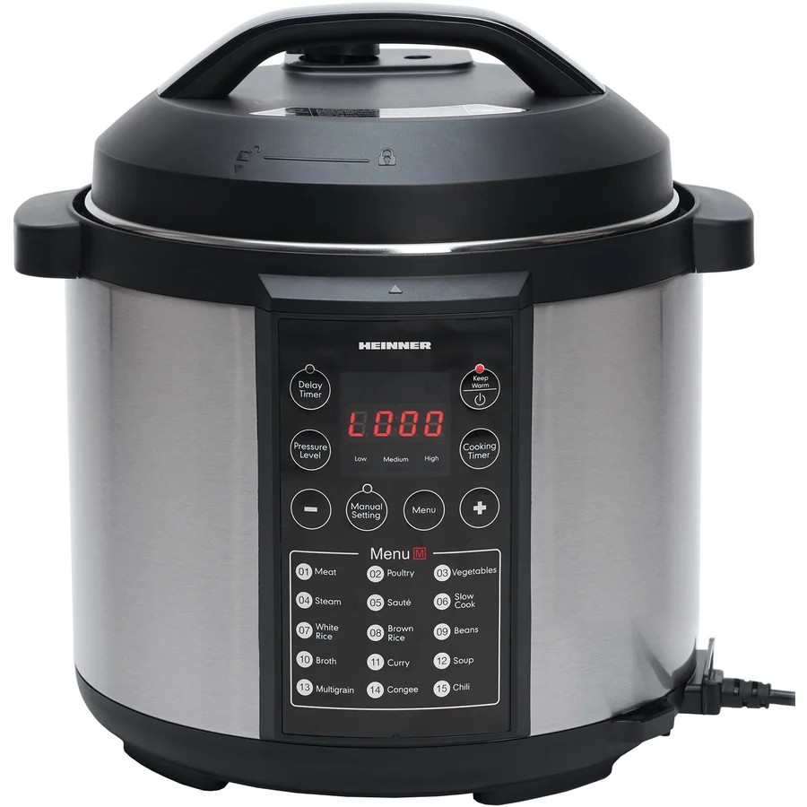 Multicooker cu gatire la presiune Heinner HPCK-6IX, 3.8 L, 15 programe, Vas antiadeziv detasabil, Presiune reglabila, Timer, Display led, Inox