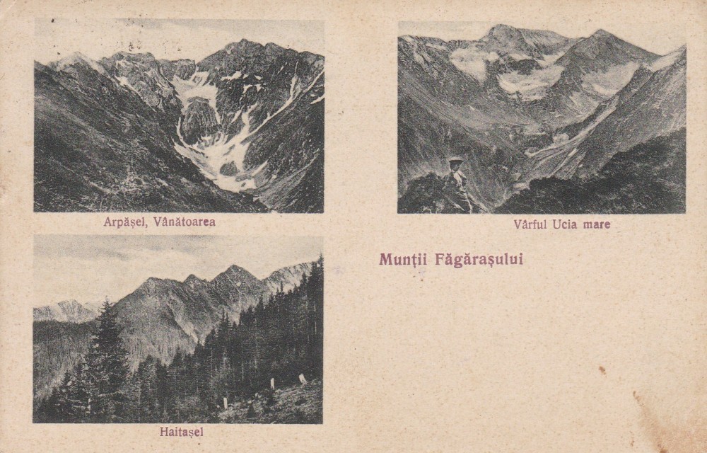 ROMANIA CARTE POSTALA MUNTII FAGARASULUI ARPASEL , VANATOAREA , VARFUL UCIA MARE , HAITASEL , CIRCULATA 1936