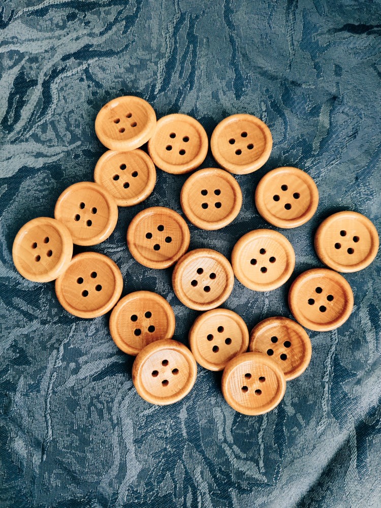 19 buc nasturi din lemn, nefolosiți. Prețul este pt toți împreună.