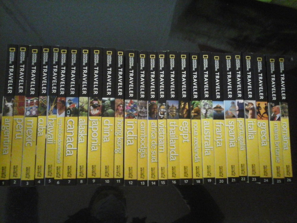 NATIONAL GEOGRAPHIC TRAVELER (ghiduri turistice) * 26 volume: 1 Argentina; 2 Peru; 3 Mexic; 4 Cuba; 5 Hawai; 6 republica Dominicana; 7 Canada ; 8 Alaska ;9 Japonia ; 10 China ; 11 Hong Kong ; 12 India ; 13 Cambodgia ; 14 Afrca de Sus ; 15 Vietnam ; 16 Thailanda ; 17 Egipt ; 18 Noua Zeelanda ; 19 Australia; 20 Franta; 21 Spania ; 22 Portugalia ; 23 Italia ; 24 Grecia ; 25 Marea Britanie ; 26 Romania