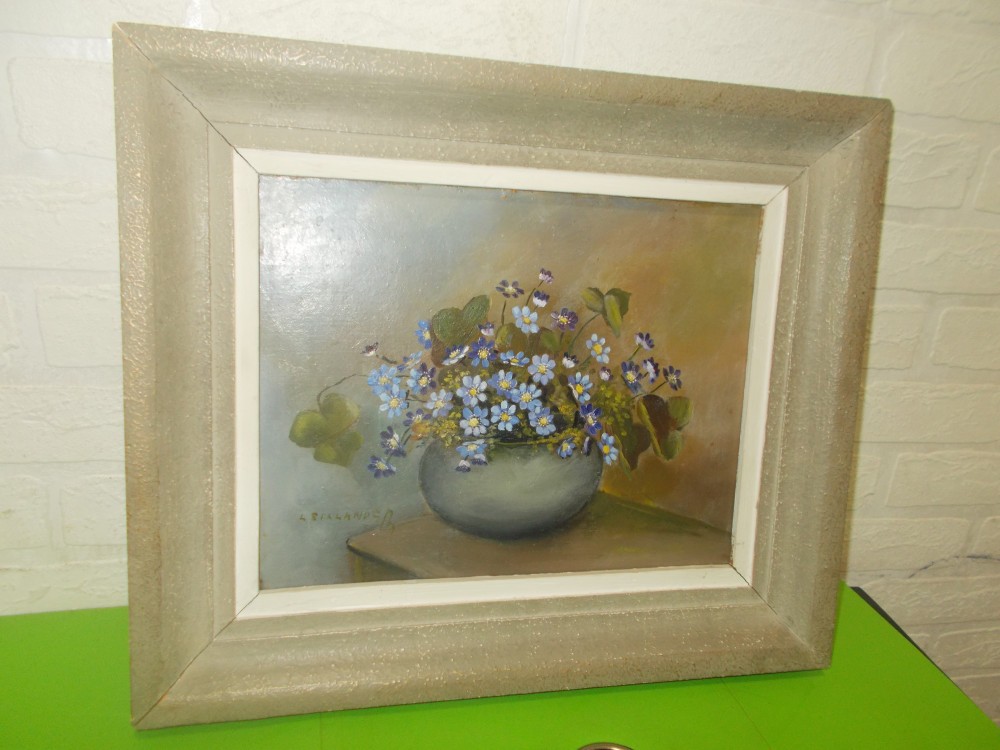 NATURA STATICA cu VIORELE , pictura in ULEI , Scoala Suedeza ,semnata Leillander