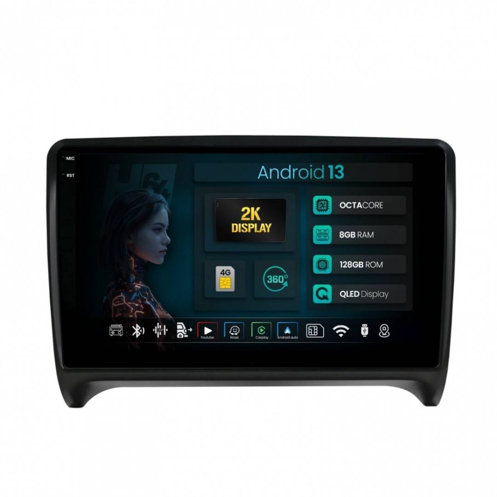 Navigatie 2K Audi TT 8GB RAM Android 13 Octacore Slot Sim 4G DSP GPS Wi-FI Carplay Android Auto USB Bluetooth Waze Touchscreen 9.5 Inch