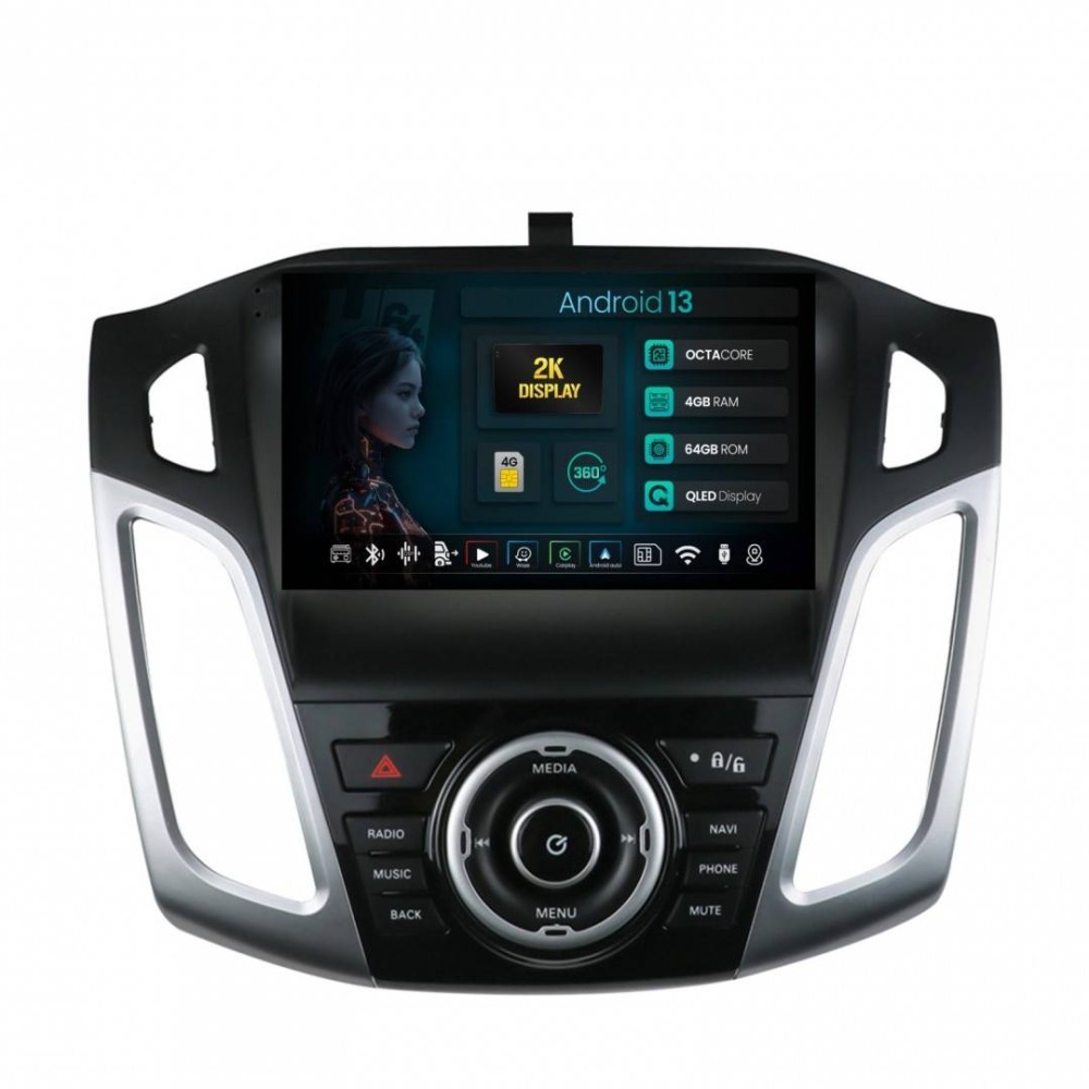 Navigatie 2K Ford Focus 3 (2011-2019) 4GB RAM Android 13 Octacore Slot Sim 4G DSP GPS Wi-FI Carplay Android Auto USB Bluetooth Waze Touchscreen 9.5 In