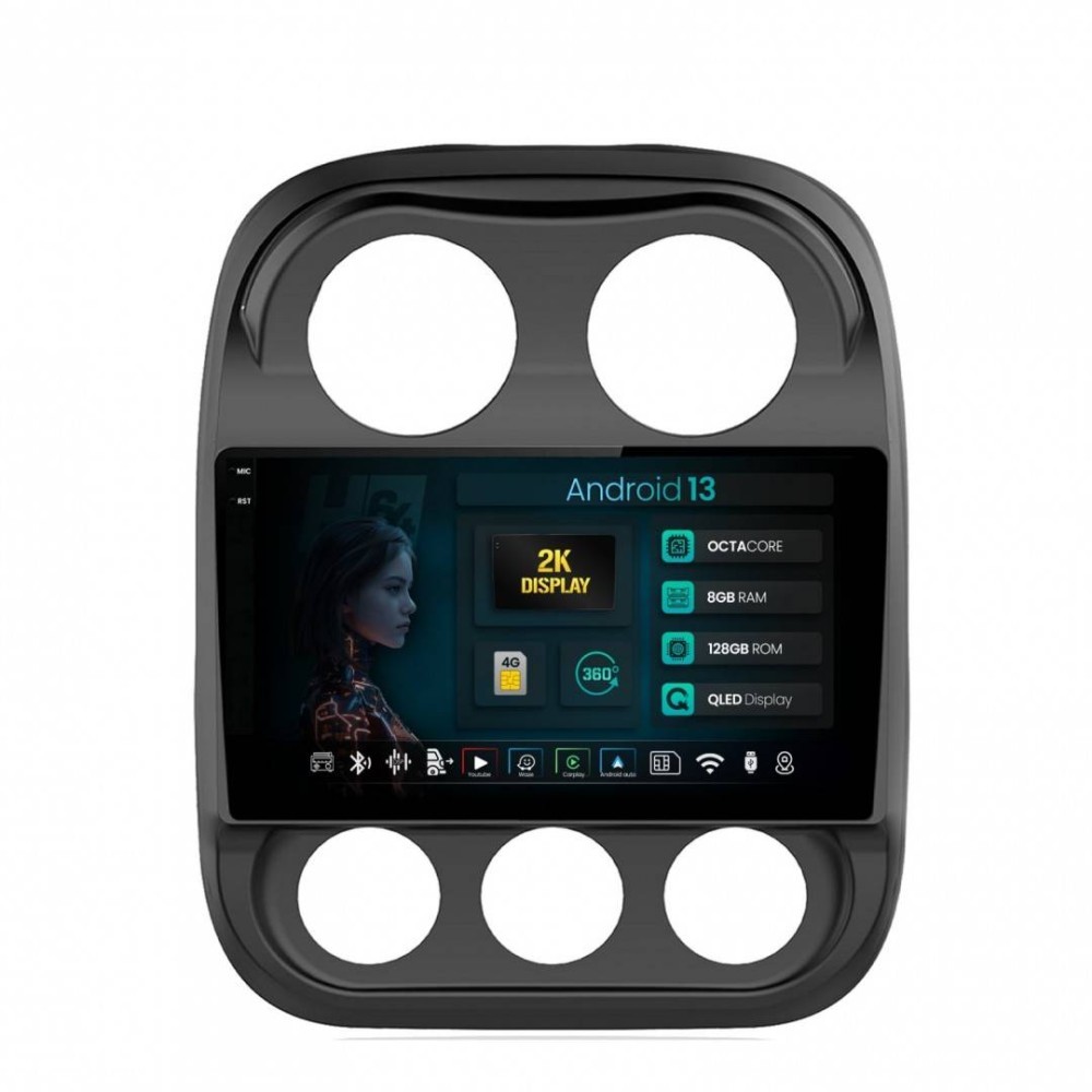 Navigatie 2K Jeep Compass (2009-2016) 8GB RAM Android 13 Octacore Slot Sim 4G DSP GPS Wi-FI Carplay Android Auto USB Bluetooth Waze Touchscreen 10.36