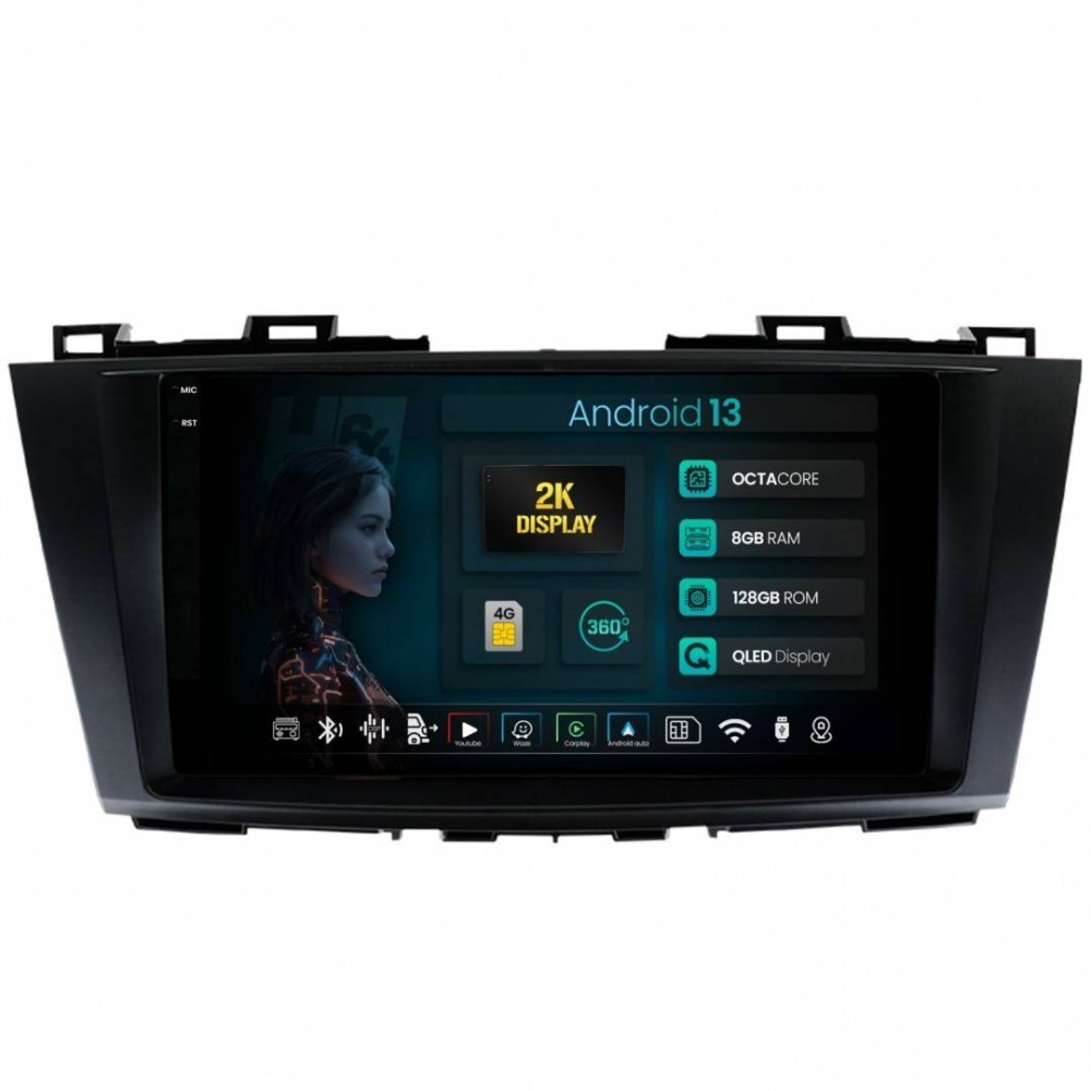 Navigatie 2K Mazda 5 (2010-2015) 8GB RAM Android 13 Octacore Slot Sim 4G DSP GPS Wi-FI Carplay Android Auto USB Bluetooth Waze Touchscreen 9.5 Inch