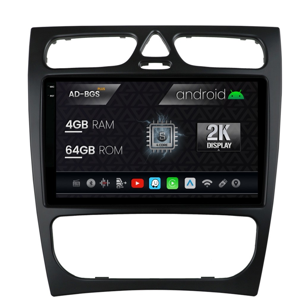 Navigatie 2K Mercedes Benz C-Class W203 (2000-2005), Android OS, S-Quadcore 4GB RAM + 64GB ROM, 9.5 Inch - AD-BGS90042K+AD-BGRKIT416