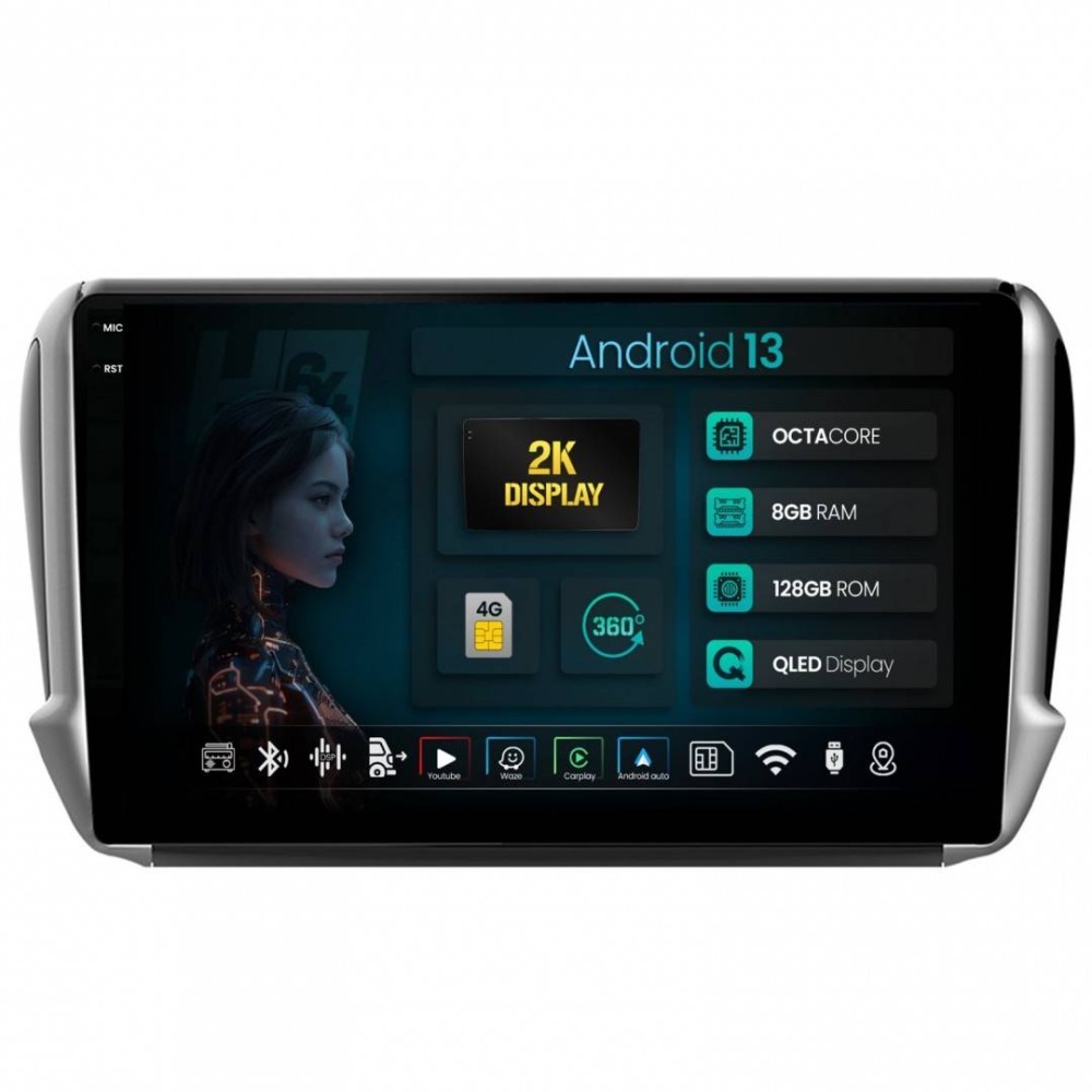 Navigatie 2K Peugeot 208 2008 (2012+) 8GB RAM Android 13 Octacore Slot Sim 4G DSP GPS Wi-FI Carplay Android Auto USB Bluetooth Waze Touchscreen 10.36