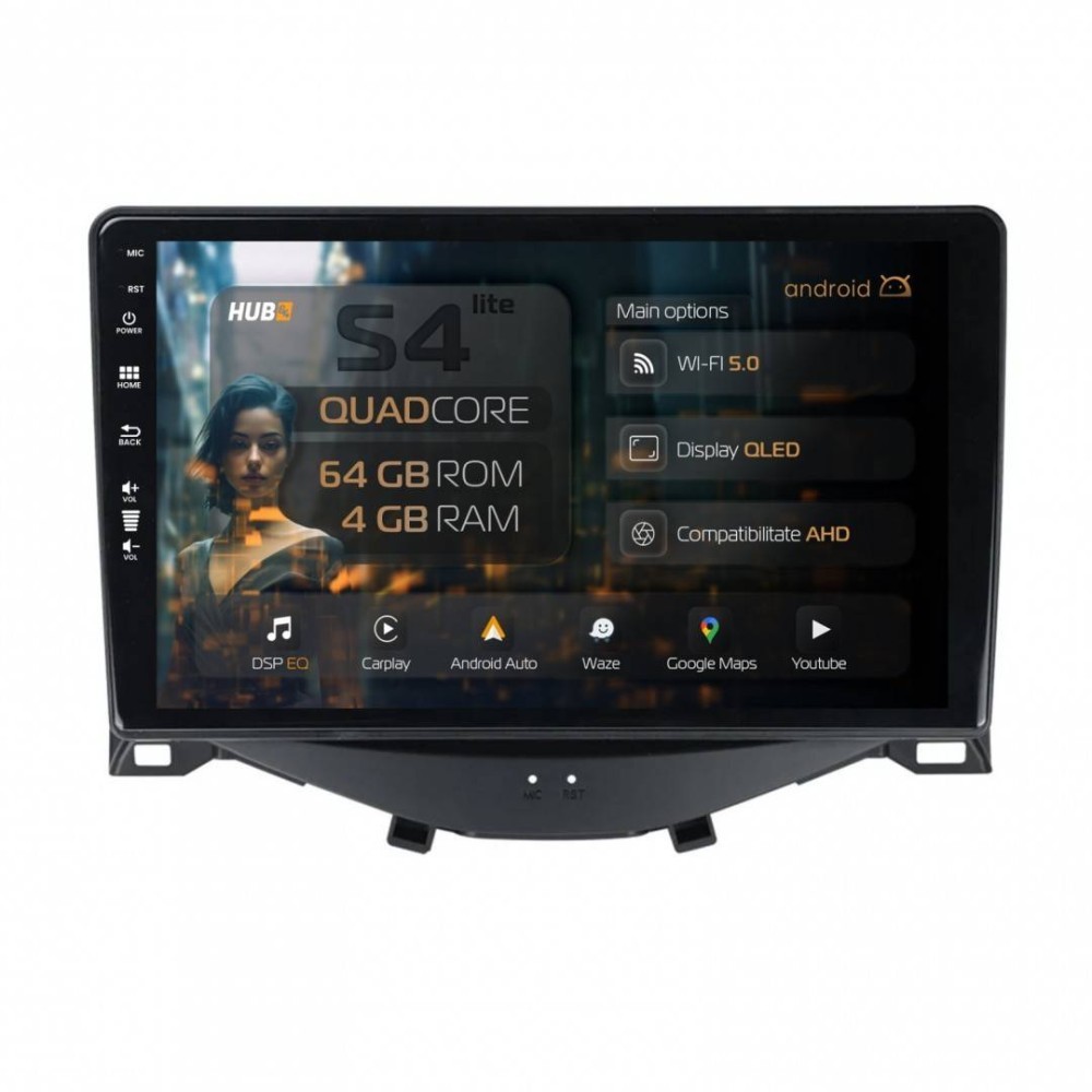 Navigatie Citroen C1 / Peugeot 108 / Toyota AYGO (2014-2022) 4GB RAM Android 13 Quadcore DSP GPS Wi-FI Carplay Android Auto USB Bluetooth Waze Touchsc